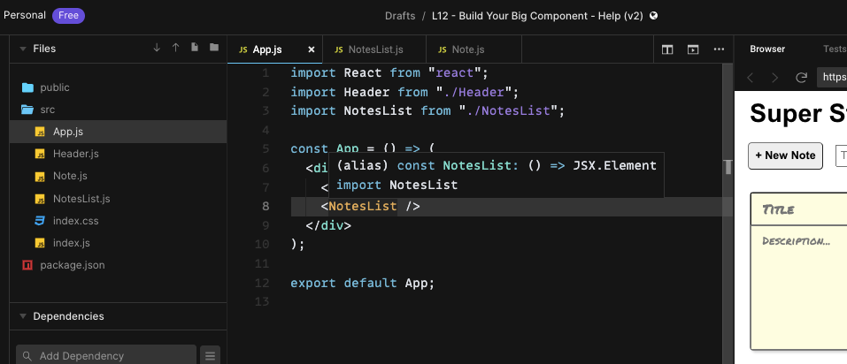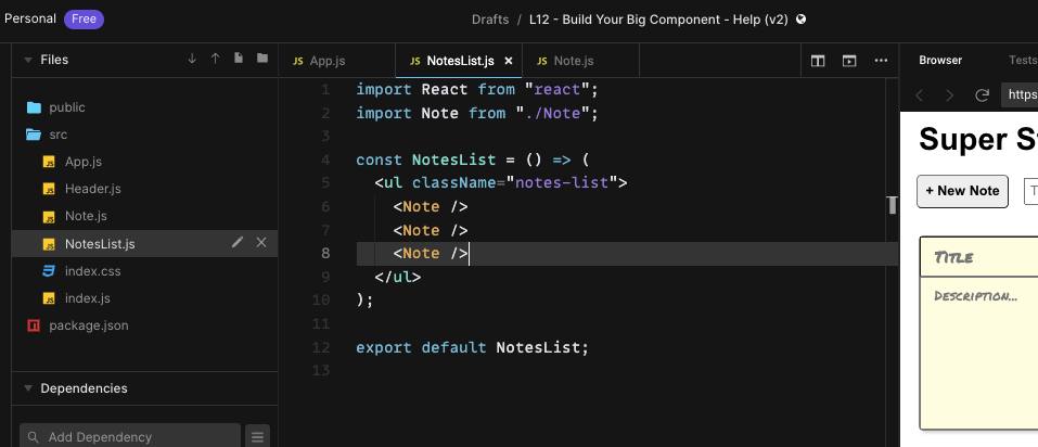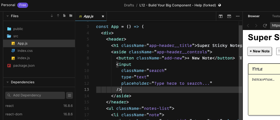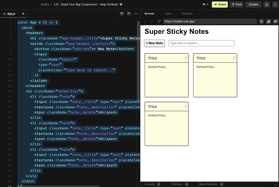 In this module we are building our way towards creating a sticky note app. We want to have components like creating a new note, editing notes, deleting notes, searching notes, and keeping it all organized.