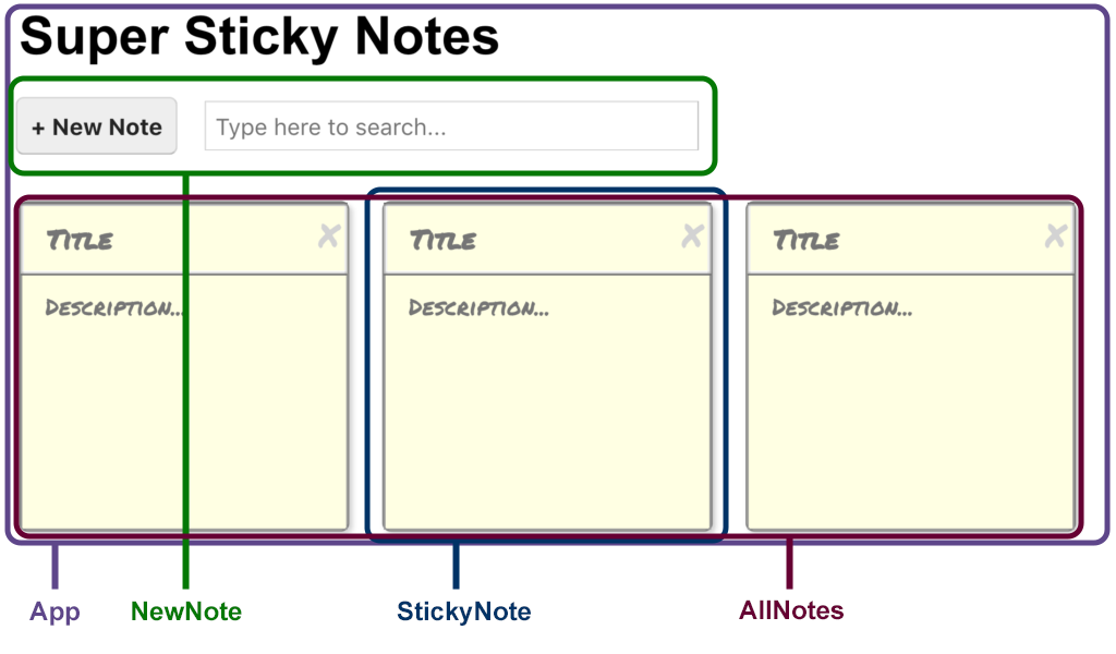 OK! Now time to breakdown the components we think that we will need for the sticky note app. Here is my rendition: